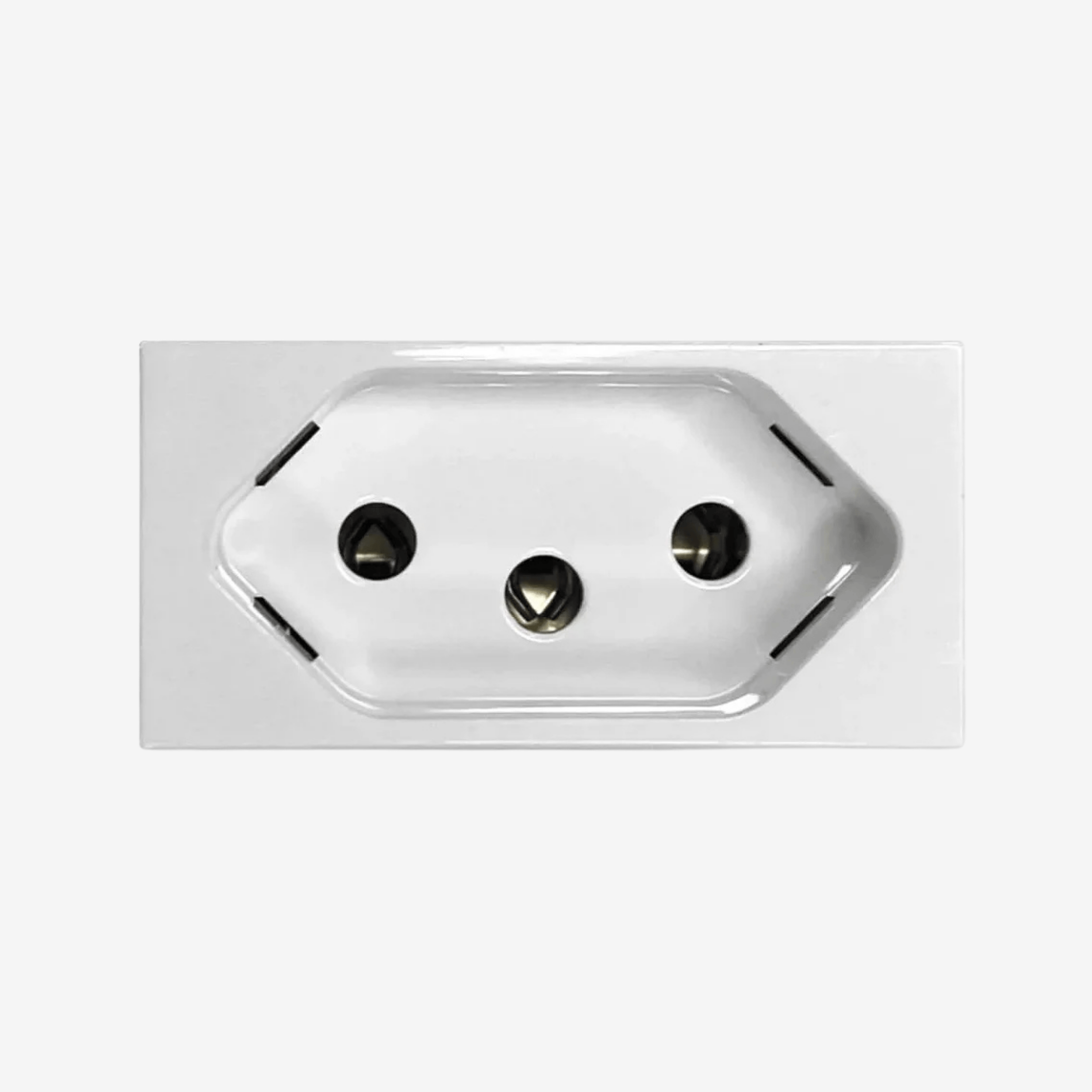 Material termoplástico de alta resistência, módulo 1 posto 2P+T com corrente nominal de 10 A e tensão conforme padrão brasileiro. Estrutura projetada para instalação modular em suportes da linha Matix GO. Acabamento branco discreto, visual clean, compatível com placas e suportes da linha Matix GO.